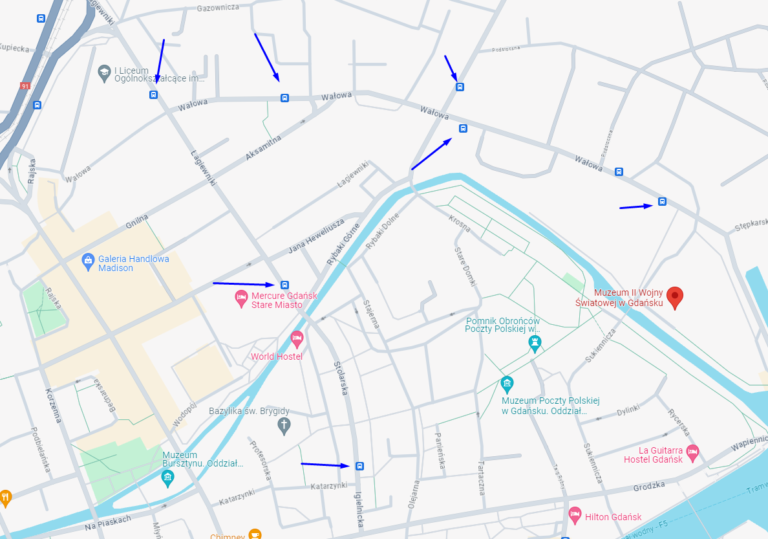Muzeum II Wojny Światowej w Gdańsku posiada parking podziemny z 142 miejscami (wysokość 1,9 m). Możesz także skorzystać z pobliskich miejsc parkingowych zgodnie ze strefą płatnego parkowania w Gdańsku.